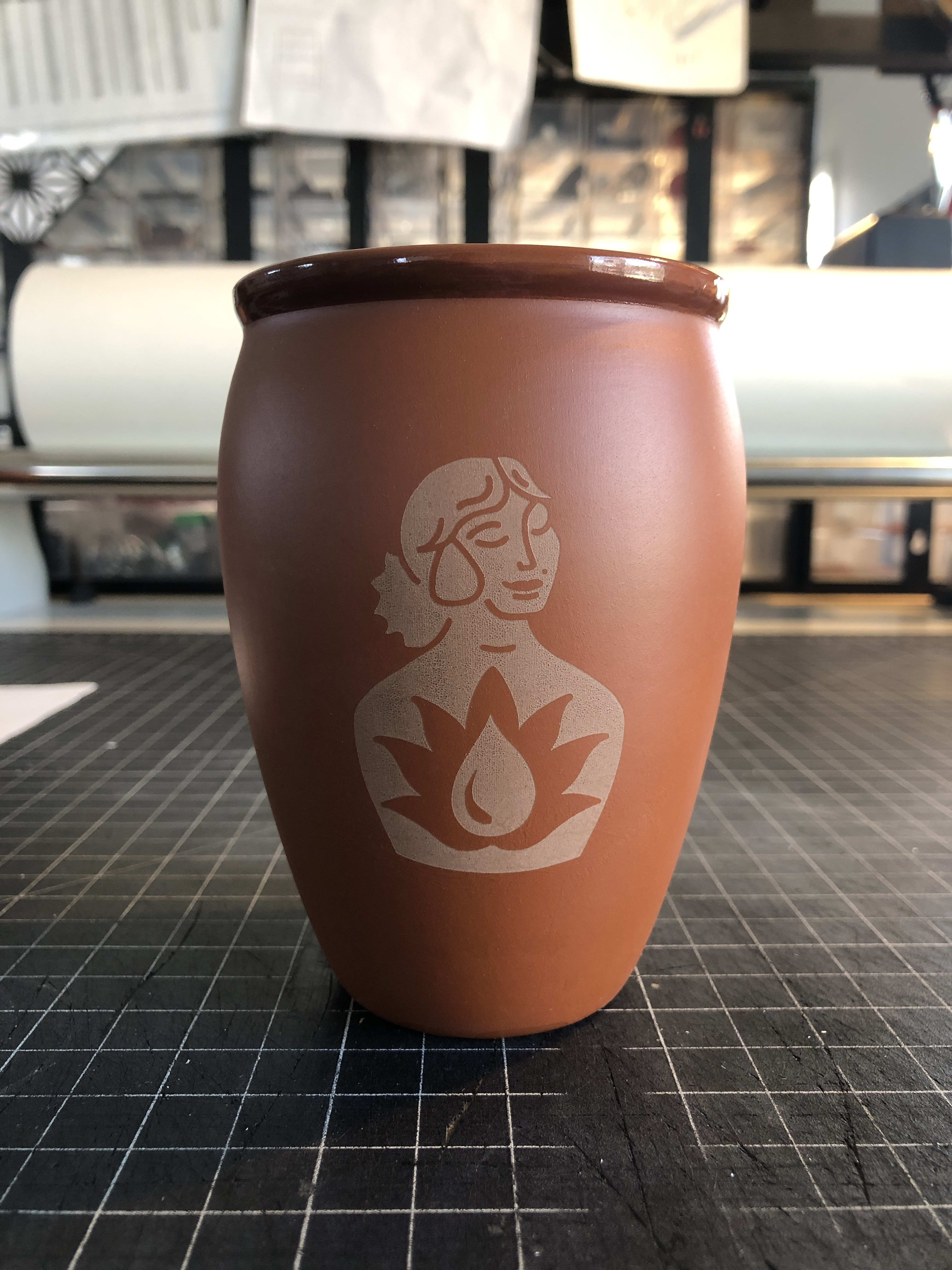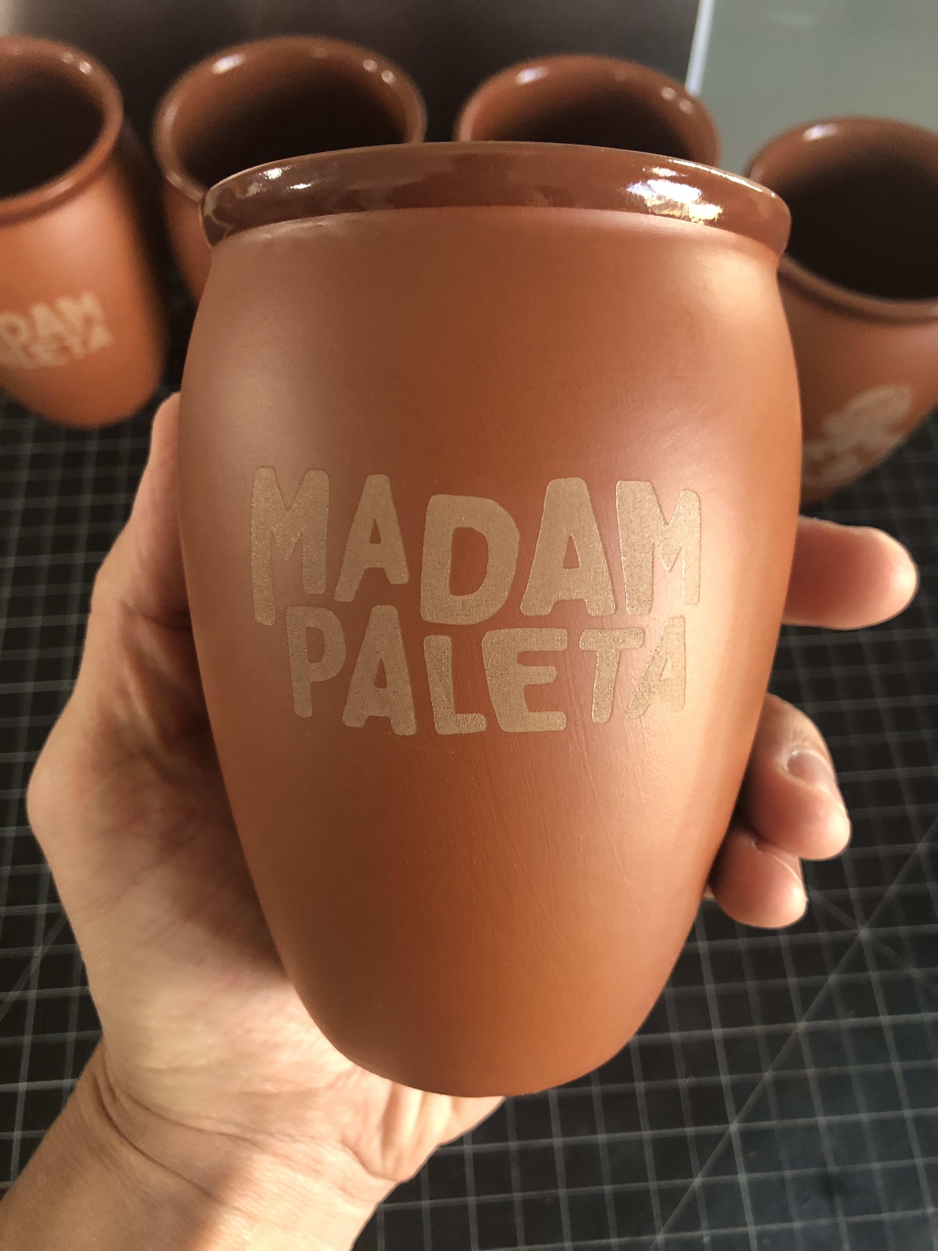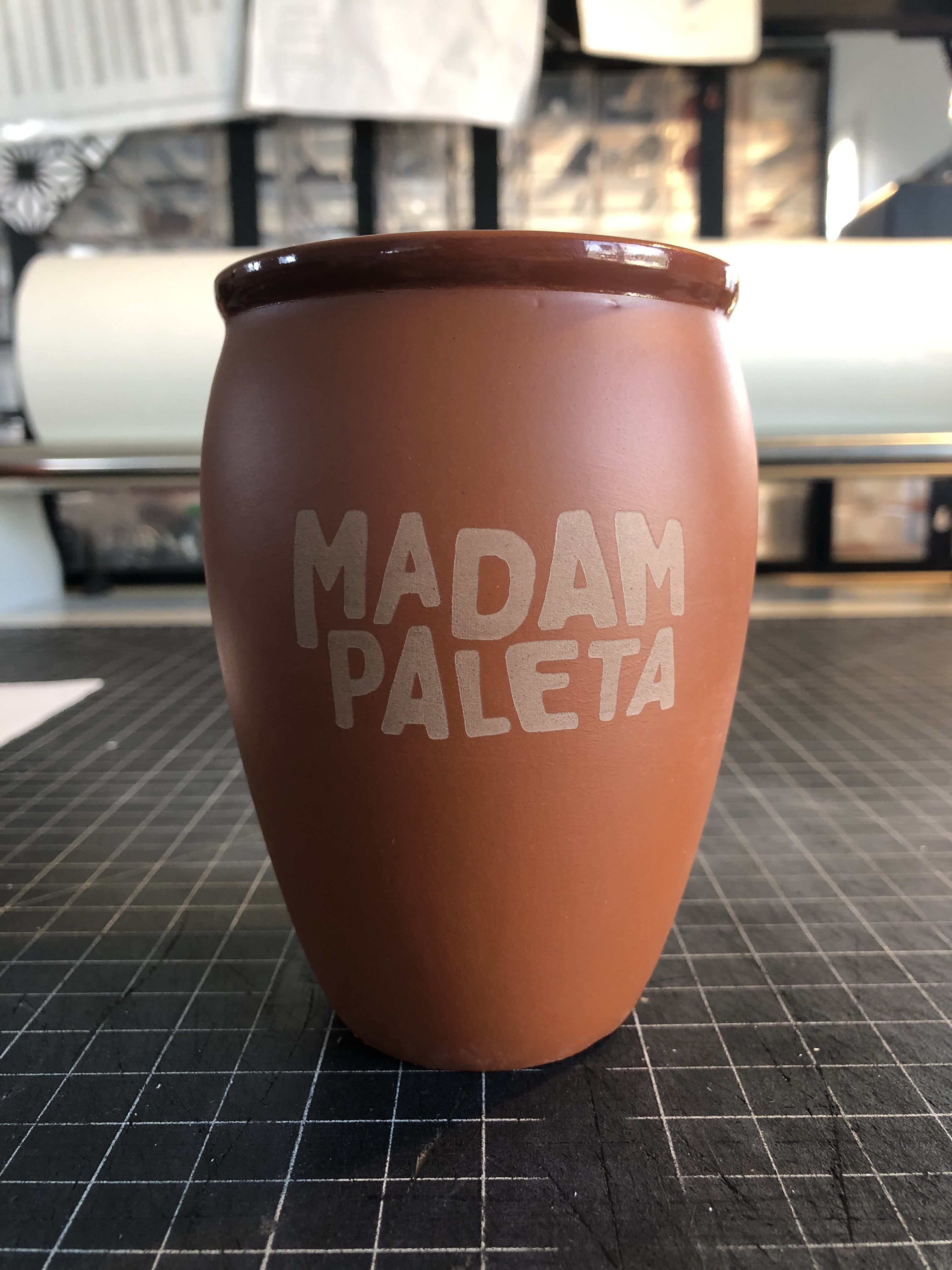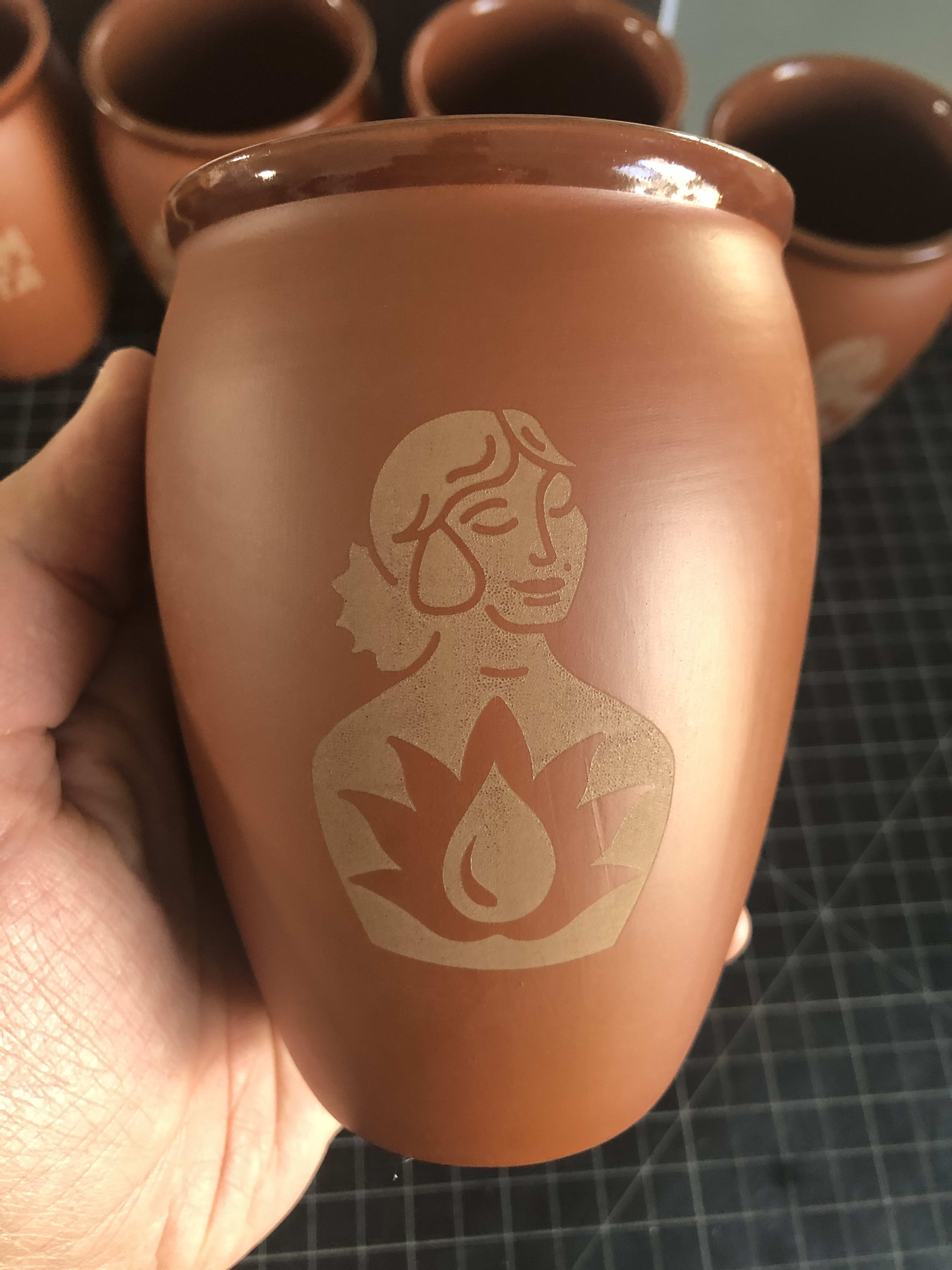 Double sided engrave on cantarito vessels for Crush Studios client Madam Paleta.